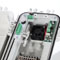 Nella base della custodia è inserito un controtelaio (removibile), realizzato in tecnopolimero, dove vengono fissati la slitta di supporto telecamera e i CS dei vari servizi: questo consente di mantenere sospesa da massa sia la telecamera sia la circuiteria, con tutti i vantaggi del caso (patent pending). Inoltre, tale soluzione soddisfa le Normative vigenti anche per impieghi in Classe II, dove non è richiesto il collegamento del cavo di terra.